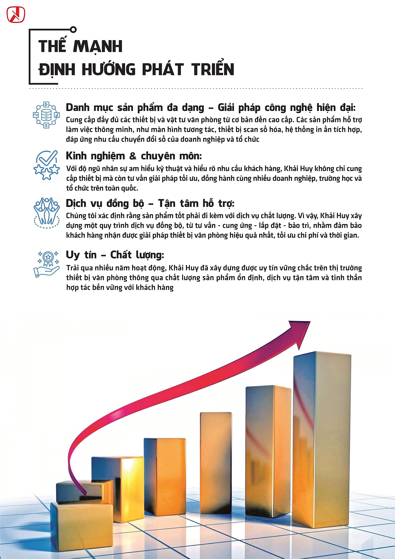 Hồ sơ năng lực Khải Huy là bản tổng quan toàn diện về năng lực, dịch vụ và những giá trị cốt lõi mà chúng tôi mang đến cho đối tác. Từ tư vấn chiến lược số, phát triển phần mềm, thiết kế hệ thống ERP đến các giải pháp công nghệ tùy chỉnh – chúng tôi cam kết đồng hành cùng bạn trên từng chặng đường đổi mới.